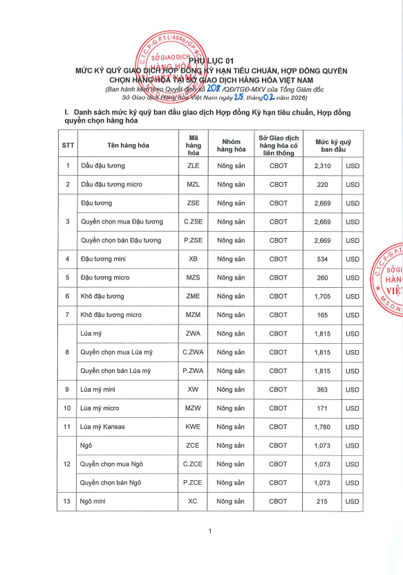 Thông báo Ban hành mức ký quỹ giao dịch hàng hóa tại Sở Giao dịch Hàng hóa Việt Nam