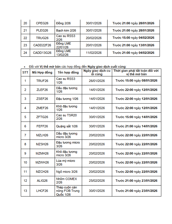 CDT Investment xin gửi tới Quý khách hàng Thông báo thời hạn tất toán các hợp đồng của Sở Giao dịch Hàng hóa Việt Nam (MXV).