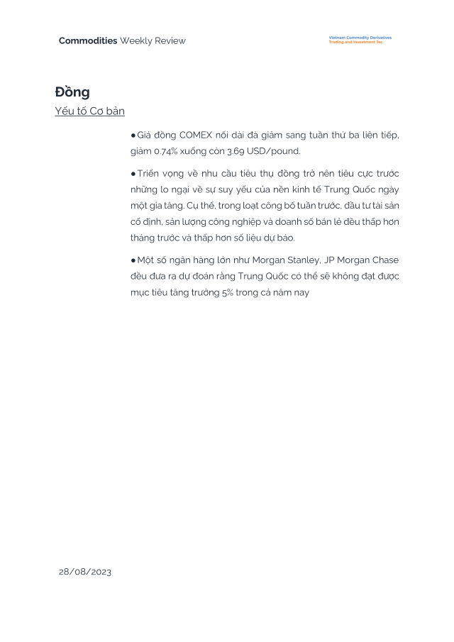 Báo cáo Phân tích Hàng hóa tuần từ ngày 28/08-03/09