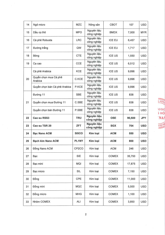Thông báo Ban hành mức ký quỹ giao dịch hàng hóa tại Sở Giao dịch Hàng hóa Việt Nam