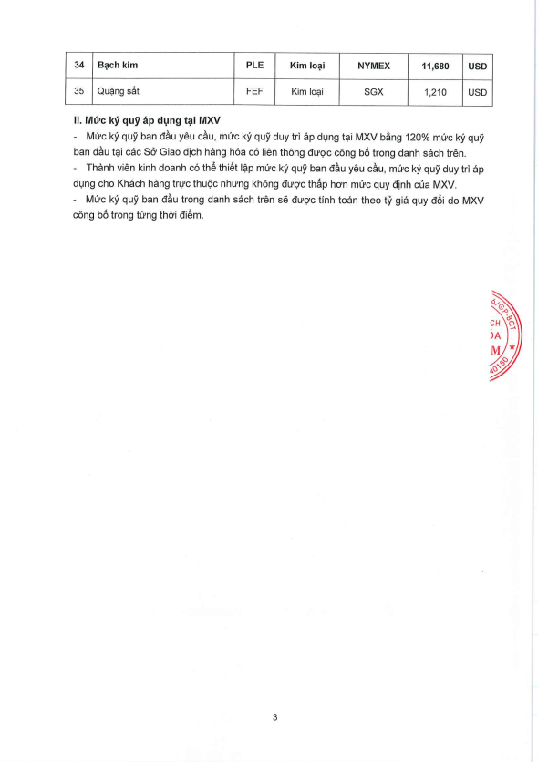 Thông báo Ban hành mức ký quỹ giao dịch hàng hóa tại Sở Giao dịch Hàng hóa Việt Nam