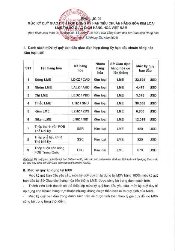 Thông báo Ban hành mức ký quỹ giao dịch hàng hóa tại Sở Giao dịch Hàng hóa Việt Nam