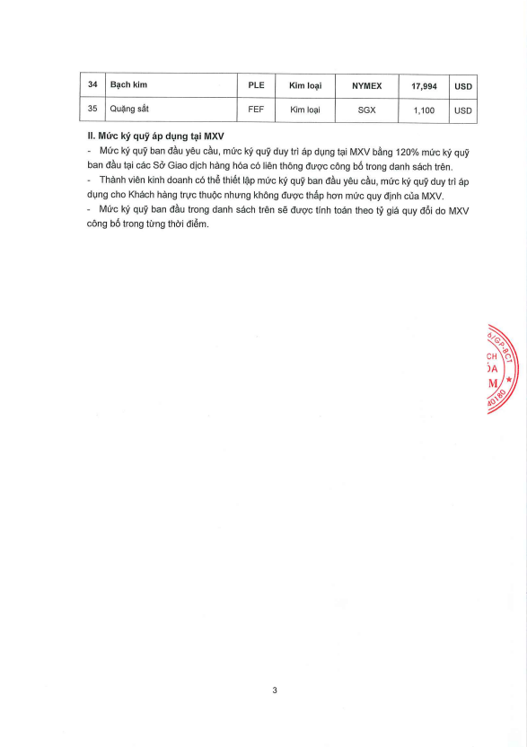 Thông báo Ban hành mức ký quỹ giao dịch hàng hóa tại Sở Giao dịch Hàng hóa Việt Nam