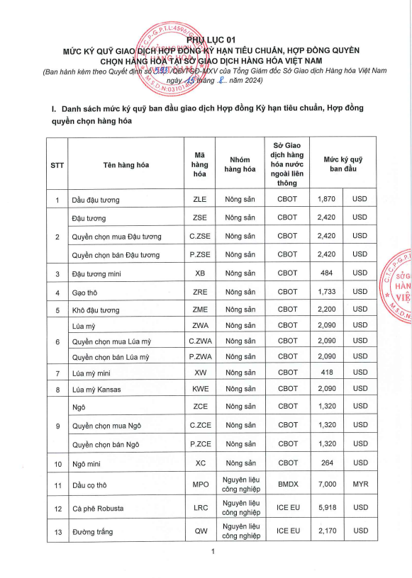 Thông báo Ban hành mức ký quỹ giao dịch hàng hóa tại Sở Giao dịch Hàng hóa Việt Nam