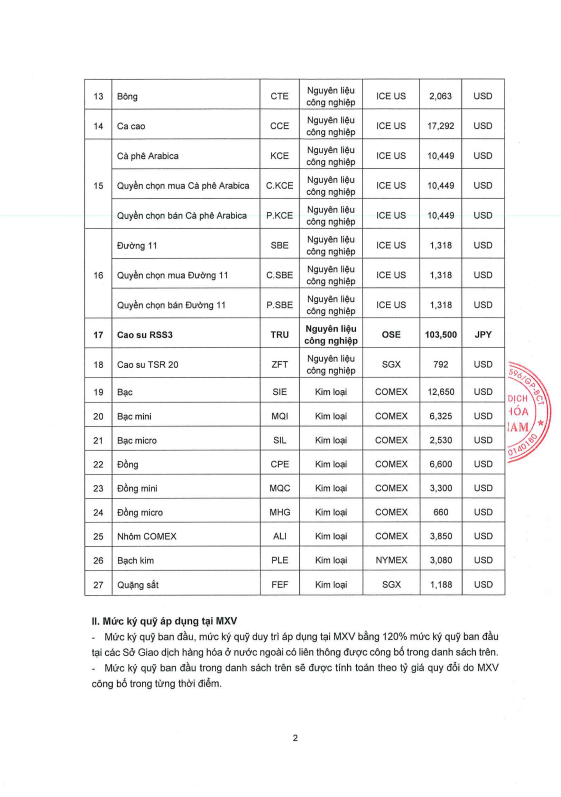Thông báo Ban hành mức ký quỹ giao dịch hàng hóa và liên kỳ hạn mặt hàng Cà phê tại Sở Giao dịch Hàng hóa Việt Nam