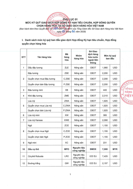 CDT Investment xin gửi tới Quý khách hàng Quyết định số 109, 110/QĐ/TGĐ-MXV ngày 03/02/2025 về việc Ban hành mức ký quỹ giao dịch hàng hóa và liên kỳ hạn mặt hàng Cà phê tại MXV, áp dụng từ phiên giao dịch ngày 28/01/2025 và Quyết định số 111/QĐ/TGĐ-MXV ngày 03/02/2025 về việc Ban hành mức ký quỹ giao dịch hàng hóa tại MXV, áp dụng từ phiên giao dịch ngày 03/2/2024.