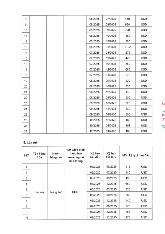 CDT Investment xin gửi tới Quý Thành viên Quyết định số 68, 69/QĐ/TGĐ-MXV ngày 17/01/2025 về việc Ban hành mức ký quỹ giao dịch hàng hóa và liên kỳ hạn mặt hàng Nông sản tại MXV, áp dụng từ phiên giao dịch ngày 20/01/2025.