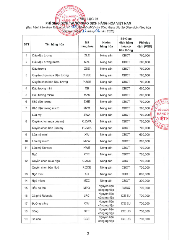 Thông báo điều chỉnh chính sách phí áp dụng tại Sở Giao dịch Hàng hóa Việt Nam