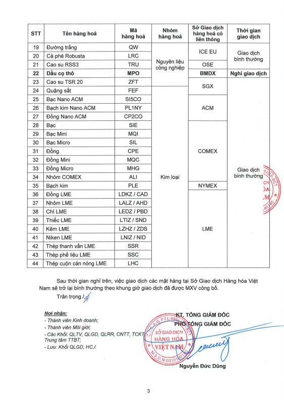 Thông báo Nghỉ giao dịch một số mặt hàng tại MXV